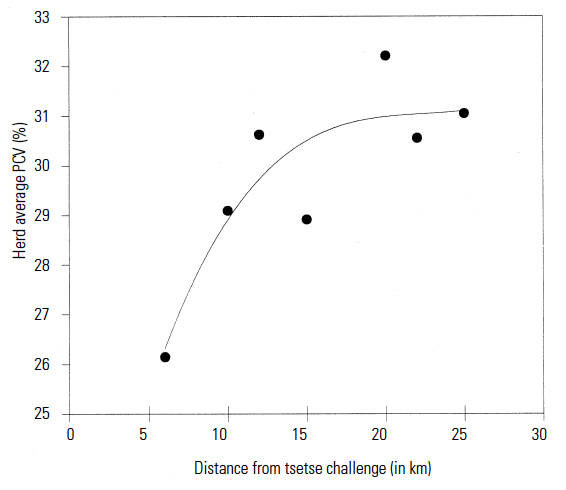 By the late 1990s, bovine trypanosomosis was prevalent only in the northern and eastern parts of the country. In these areas, cattle contract the disease as they graze within or along the edge of the barrier294 where they are exposed to tsetse fly. Challenge is generally low and bovine trypanosomosis does not constitute a major constraint to animal health and production. Notwithstanding the favourable disease situation, the trypanosomosis threat is real. A breakdown of the barrier to reinvasion could expose over one million highly susceptible cattle in the commercial and communal farming sectors to the risk of trypanosomosis. Continuous disease surveillance is essential. The speed with which tsetse fly are capable of reinvading cleared areas was demonstrated on an experimental basis when a portion of the target barrier was removed in the northeast of the country.304 The impact of the breakdown of control on animal health was also clearly shown.
