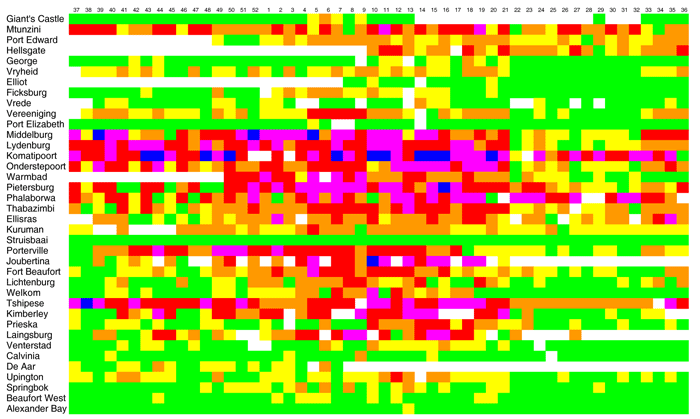 Further insights gained from field outbreaks strongly support the laboratory findings around C. bolitinos, and thus the ‘single-vector status quo’ that has stood since the time of du Toit’s seminal studies115 on C. imicola more than 50 years ago, is gradually being eroded. In addition, the longneglected study of the interaction between Culicoides and African game animals (which naturally cycle the abovementioned viruses) has finally received some attention, and yielded much that is of interest. This growth in basic knowledge was not only multi-disciplinary in its embrace but also formed part of an attempt to ‘modernize’ the study of Culicoides in Africa. Another consequence was the production of three satellite-based predictive risk maps for C. imicola, the first for any species of Culicoides in the world.