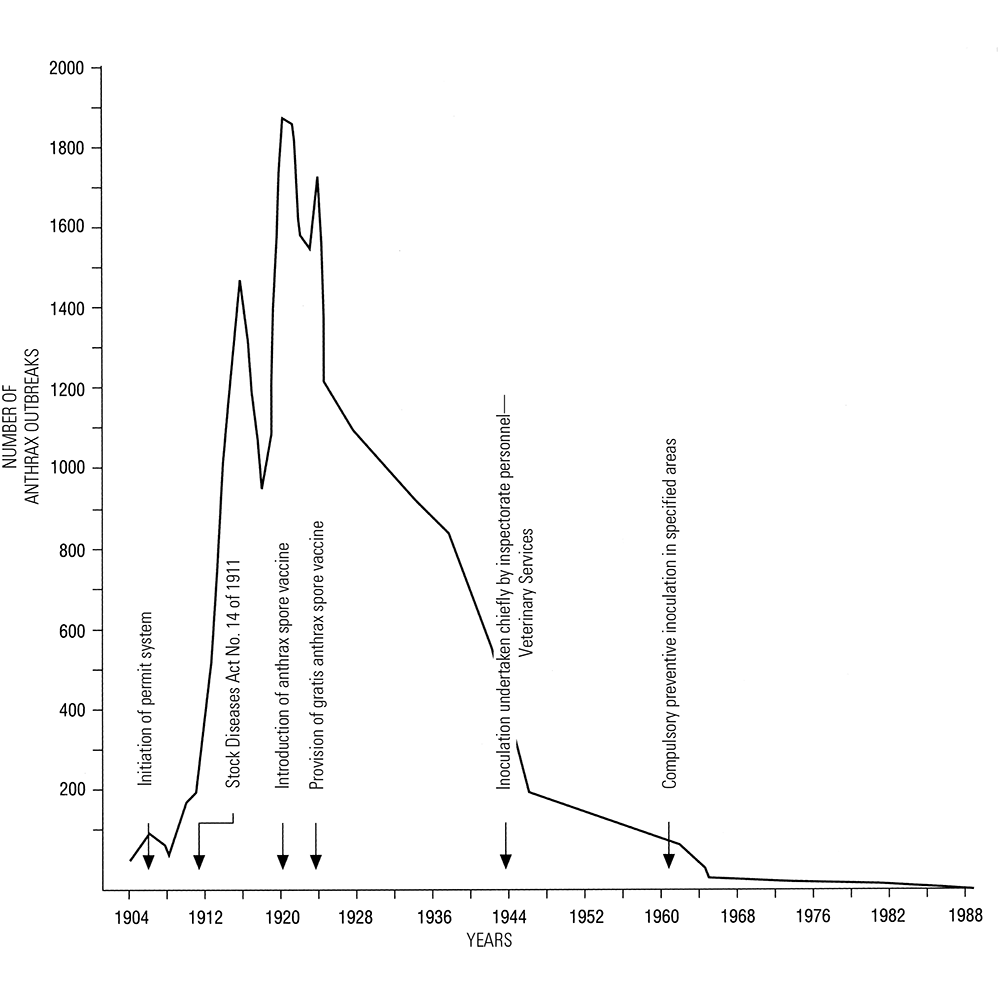 - VILJOEN, P. R., CURSON, H. H. & FOURIE, P. J. J., 1928. Anthrax in South Africa. 13th and 14th Reports of the Director of Veterinary Education and Research, 431-528.