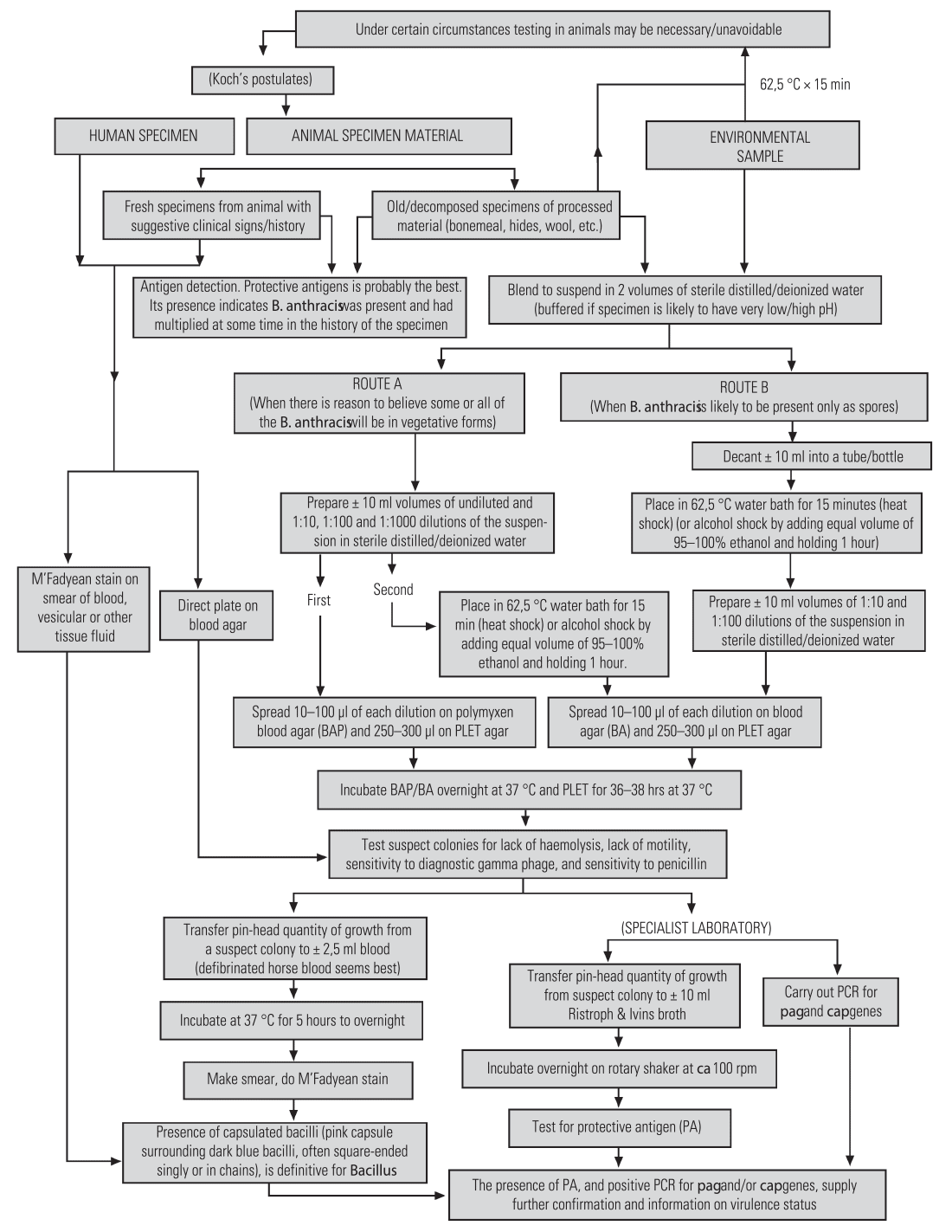 - WEAVER, R. E., BRACHMAN, P. S. & FEELEY, J. C., Anthrax. In: BODILY, H.L., UPDIKE, E.L. & MASON, J.O., (eds). Diagnostic Procedures for Bacterial, Mycotic and Parasitic Infections, 5th edition, New York: The American Public Health Association Inc.