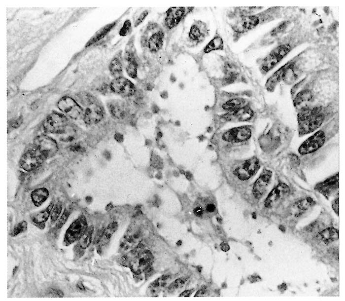 In formalin-fixed tissue sections, endogenous stages can be demonstrated in the brush border of intestinal epithelial cells.55 Care must be taken to distinguish organisms in tissue sections from small droplets of mucus adhering to the surface of epithelial cells.15