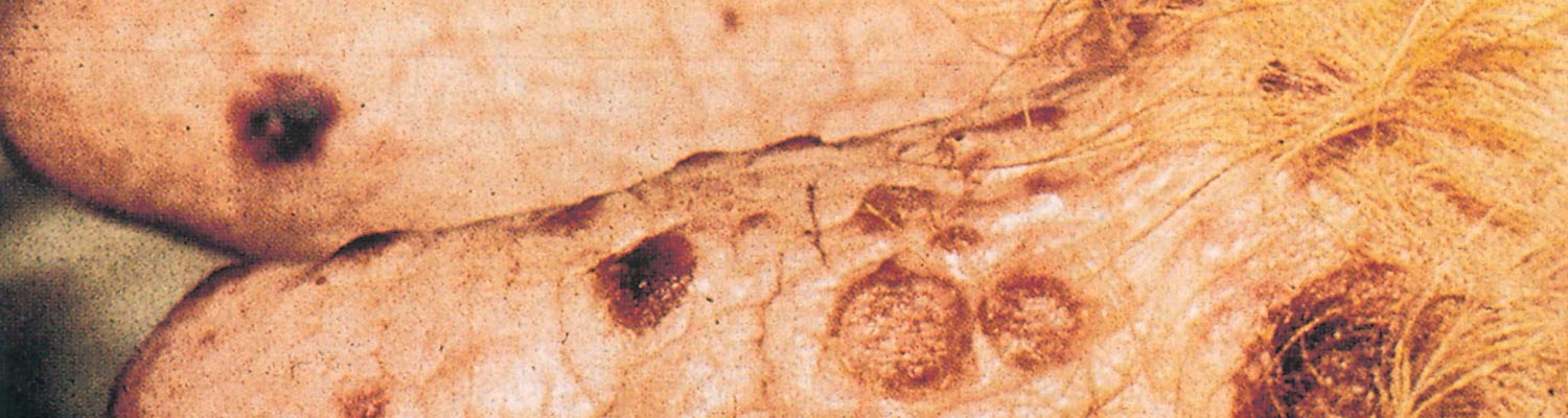 Personnel handling infected animals may develop pox-like lesions on the hands, forearms or even on the face (milk-er’s nodules). Fever and swelling of lymph nodes, which last two to four weeks, may be observed in humans during the acute stage of the disease.9 The infection in humans takes a mild course unless secondary bacterial infections occur.